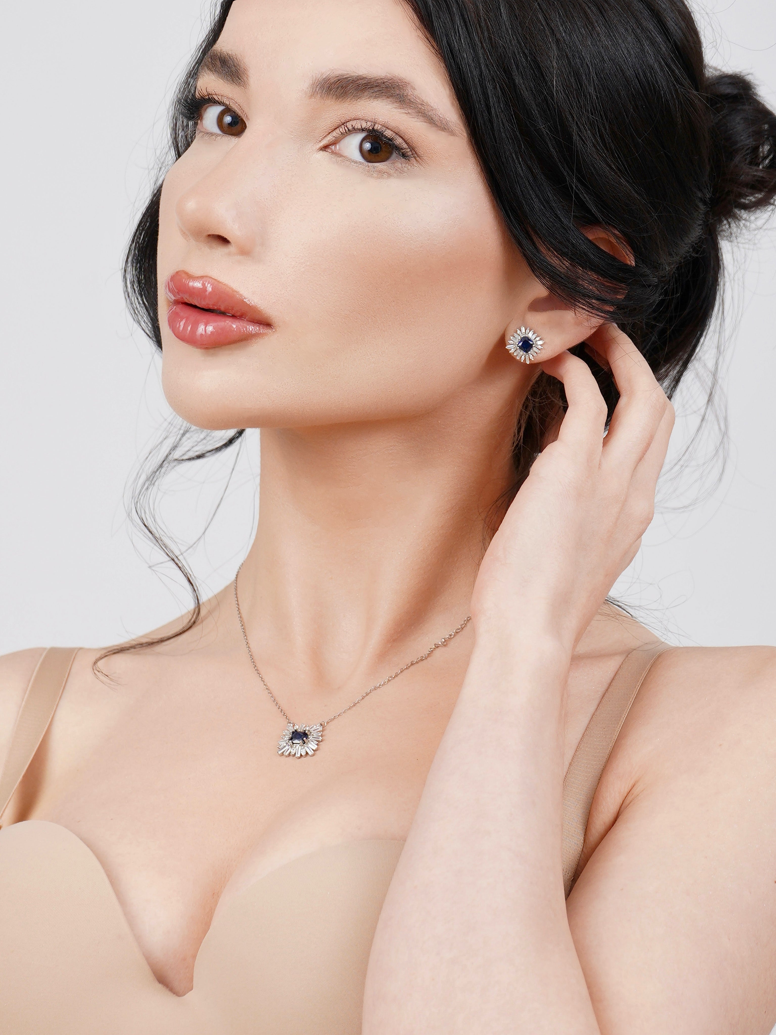 Azuré – дамски сребърен пръстен със син кубичен цирконий и кристали