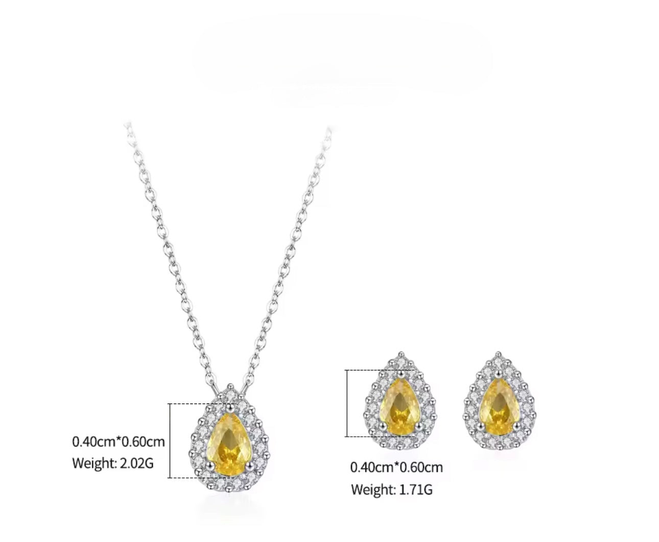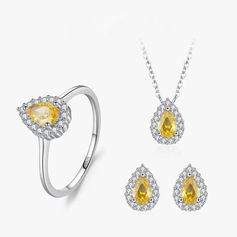 Luminelle – Луксозен комплект с жълт цирконий във форма „водна капка“