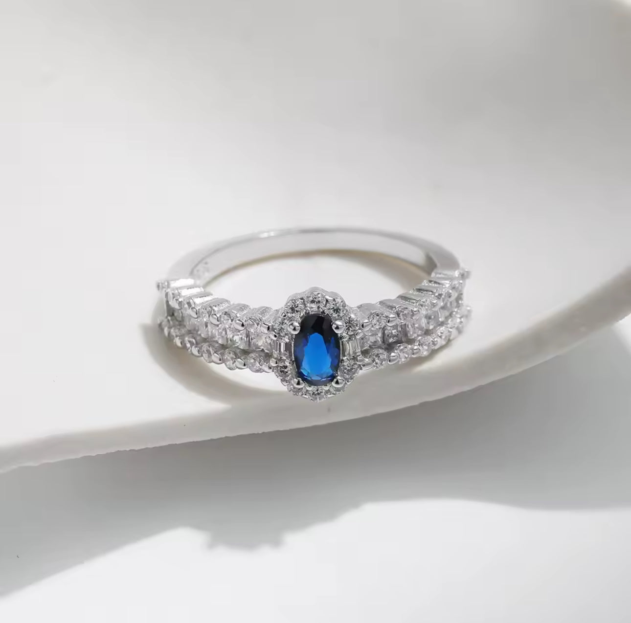 Камъни – син овален кубичен цирконий, бели кубични цирконии
