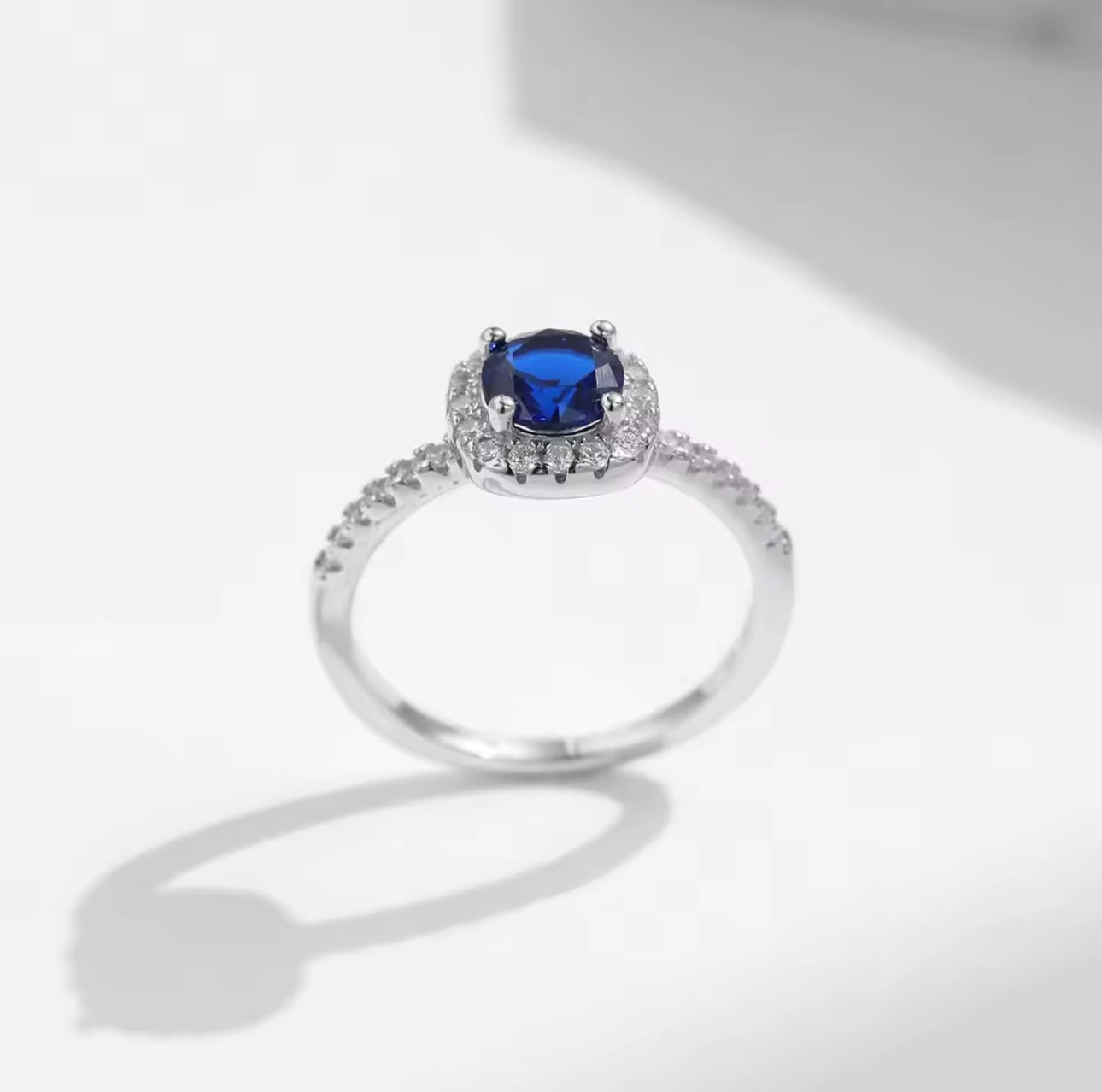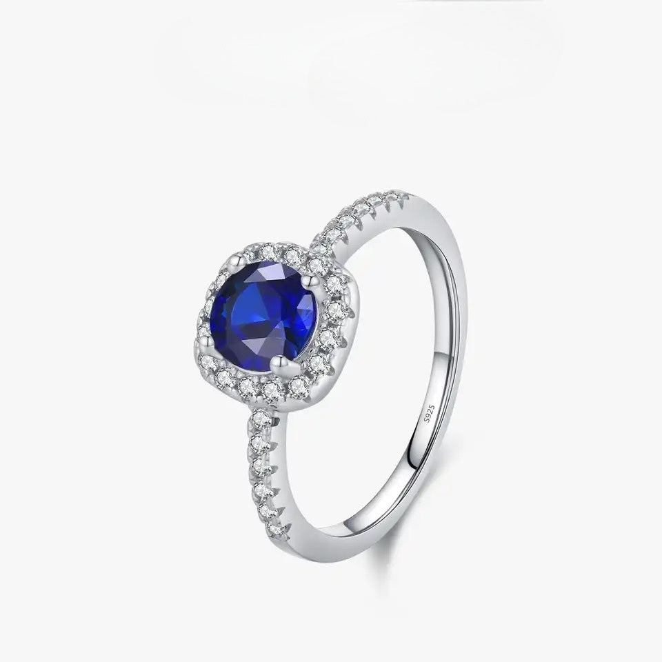 Azuré – дамски сребърен пръстен със син кубичен цирконий и кристали