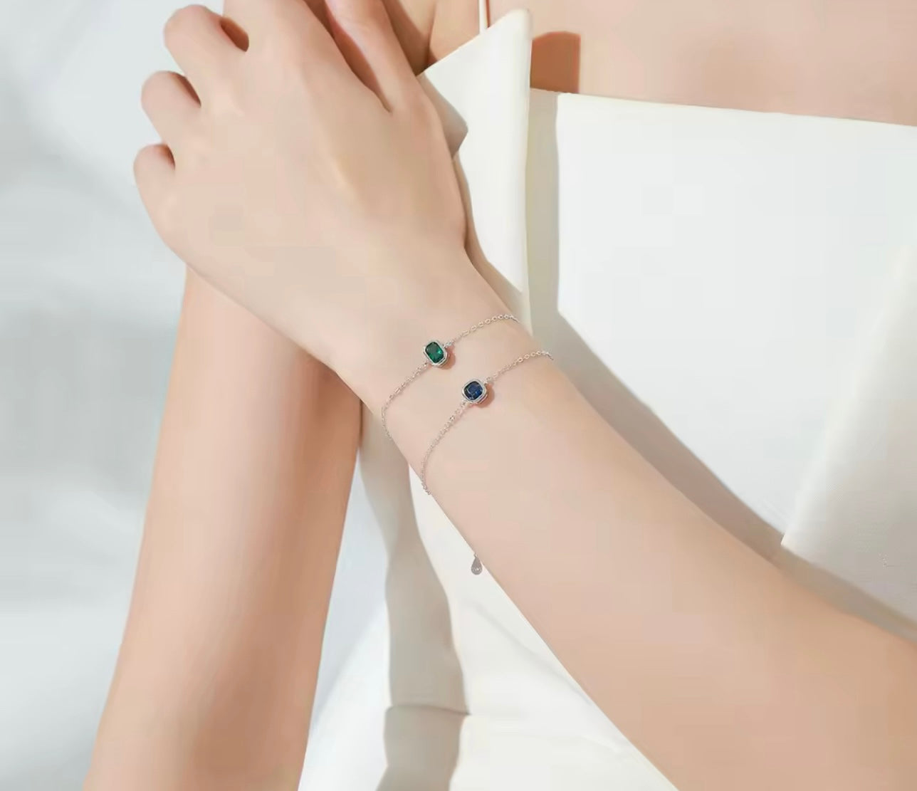 Liora – дамска сребърна гривна с зелен кубичен цирконий