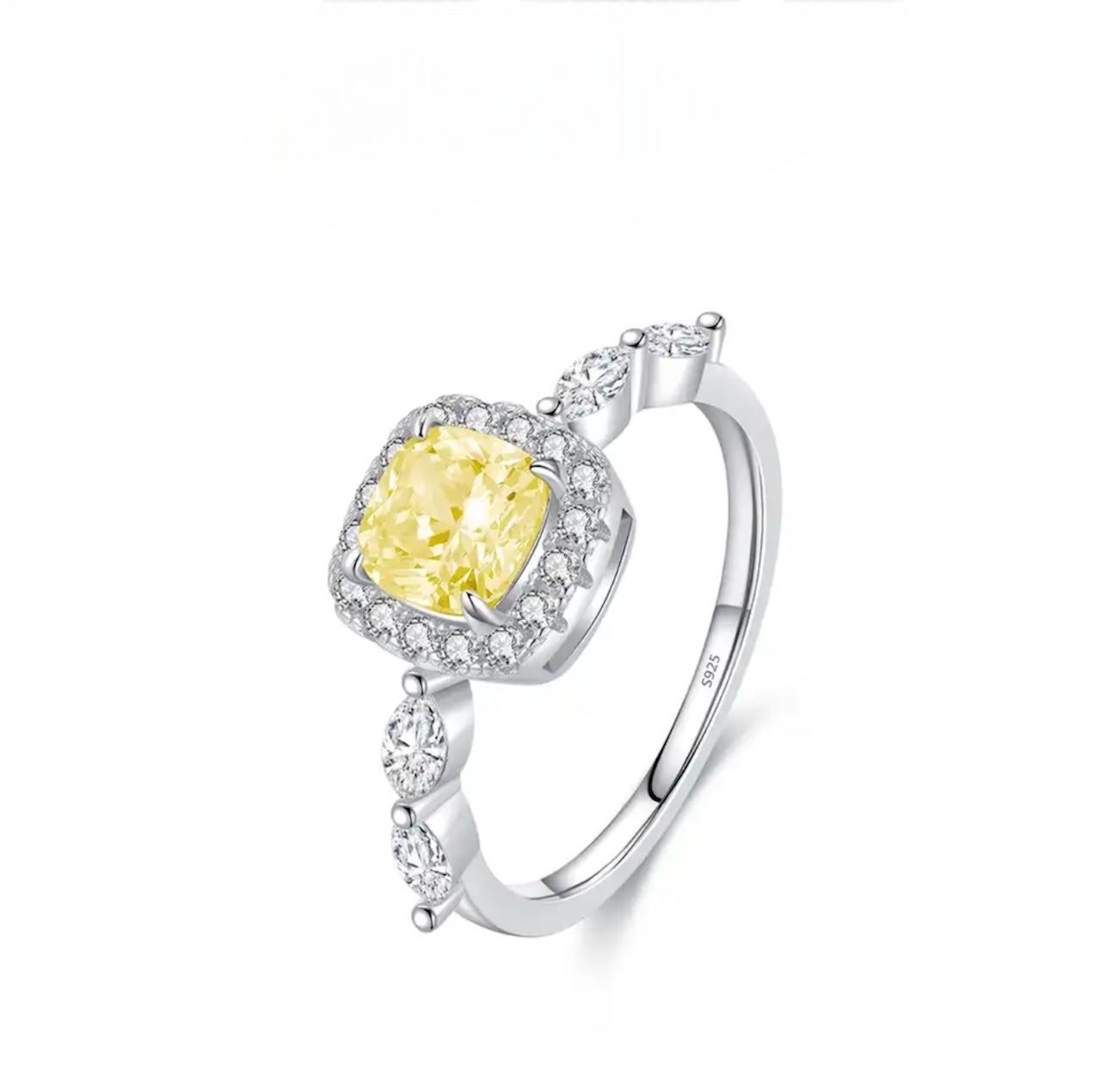 Пръстенът Soleia е символ на изящество и неповторим стил, изработен от първокласно стерлингово сребро S925. Централният му жълт кубичен цирконий, заобиколен от изящни бели кубични цирконии, улавя светлината и създава ефектен, сияен блясък. Дизайнът съчетава класическа елегантност с модерен шик, превръщайки Soleia в съвършен аксесоар за официални събития, вечерни визии или специални моменти. Изключителен подарък за жена, която цени луксозни, внимателно изработени и впечатляващи бижута.